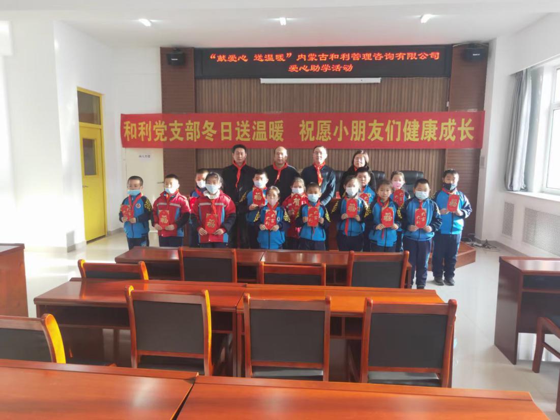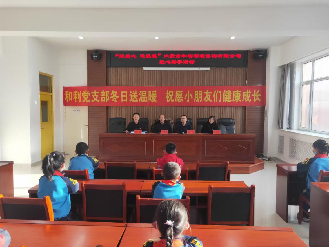 12月23日上午,金川工業園區黨群工作部部長郭麗君、金川工業園區黨群工作部副部長姜芙蓉、愛心企業內蒙古和利管理咨詢集團有限公司黨支部書記張偉一行前往金川學校開展慰問貧困兒童活動。