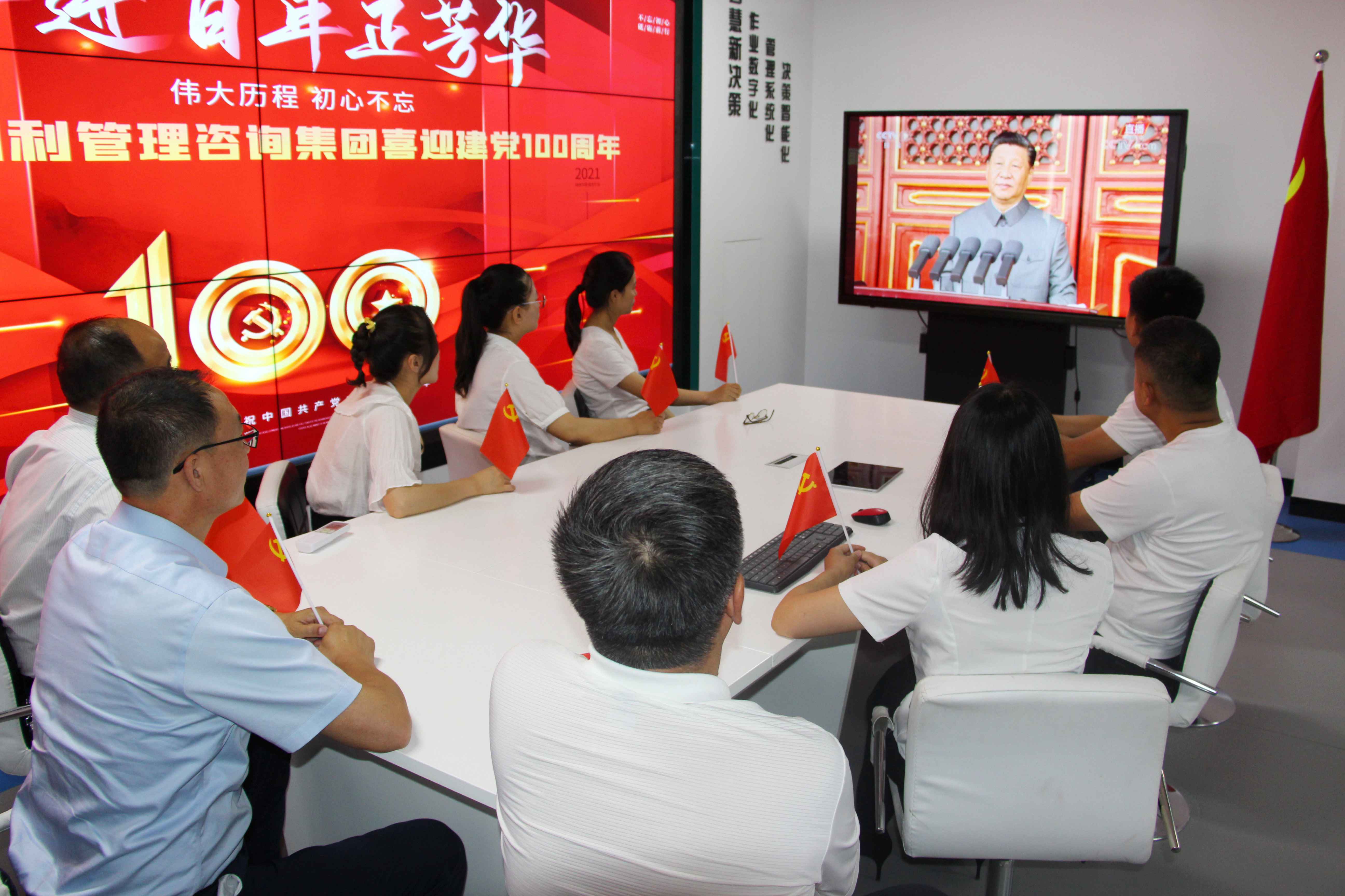 出席觀看直播活動的有和利集團總經理馮輝、和利黨支部書記張偉、財務部長張波等領導代表以及全體在金川辦公的黨員同志。在上午的直播過程中,黨員手握黨旗,不停揮動,掩蓋不住激動的內心,大家都在感慨我們是幸運的一代,我們生長在中華民族從富起來到強起來偉大飛躍的時代,實現中華民族偉大復興,是每一個中華兒女的己任。共青團員和少先隊員代表致獻詞“…… 請黨放心、強國有我”也是每一位和利人的聲音。