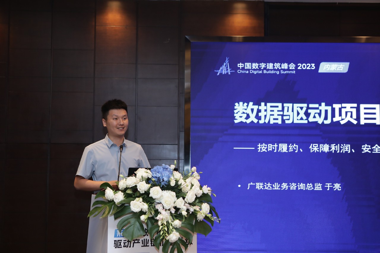 廣聯達售前咨詢總監于亮圍繞“數據驅動項目決策升級”主題分享了:針對施工企業及房建企業的項目數字化轉型,給出了詳細的解決方案,在保履約、保利潤方面做了詳細的闡述。